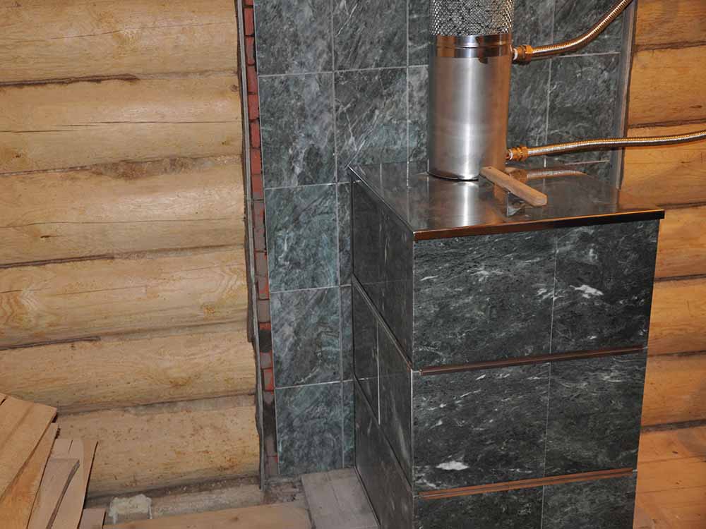 Также обязательным элементом является каменка, объем которой может колебаться от функционального назначения печки. Для маленькой парной необходимо выбирать каменку с небольшим объемом, для большой, соответственно, — с большим. Стоит не забывать о том, что чем больше каменка, тем дольше топится печь, но при этом объемная конструкция тепло держит тоже дольше.